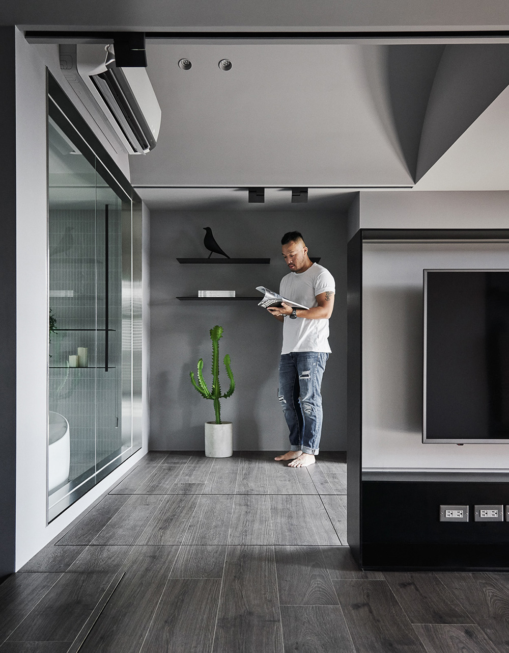 Phá vỡ các ngăn giữa cuộc sống, sử dụng kệ, tủ lưu trữ vô hình, chức năng bàn ăn, v.v. để xác định không gian, làm cho không gian linh hoạt và biến đổi, và làm mờ ranh giới trong nhà và ngoài trời. Giữa ánh sáng và khung cảnh biển rộng lớn các không gian được kết nối với nhau.